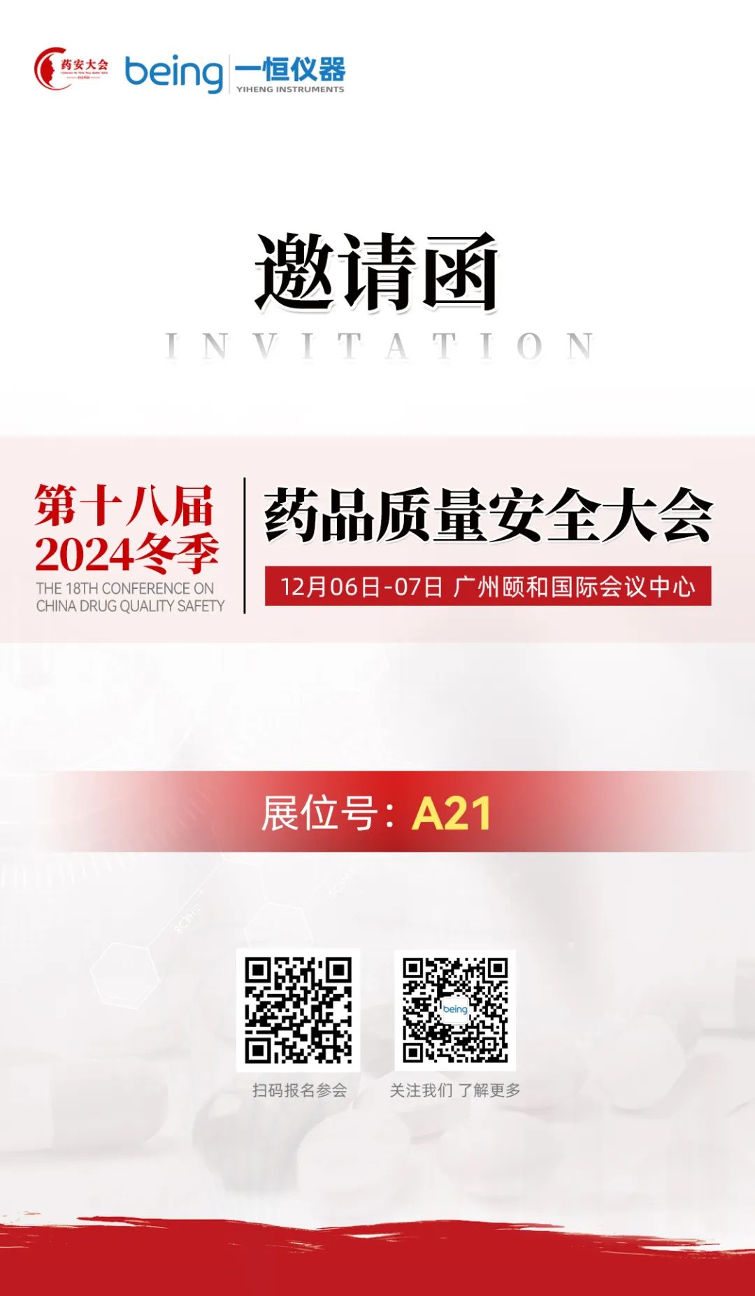 2024-12-04 | 文章(zhāng)來源: | 點擊率: 藥品質量安全大會是製藥行業質量安全領域專業性會議之一,對我國製藥行業技術發展與應用起到(dào)了重要的推動作(zuò)用。由中國社科院食品藥品(pǐn)產業發展(zhǎn)與(yǔ)監管研究中心指導、北(běi)京中培科檢信息技術中心主辦的第十八屆(2024冬季)藥品質量(liàng)安全大會將於2024年12月6-7日在廣州(zhōu)舉辦。我們受邀參加(jiā)此次會(huì)議,展位:A21,期(qī)待您蒞臨現場並(bìng)交流合作。