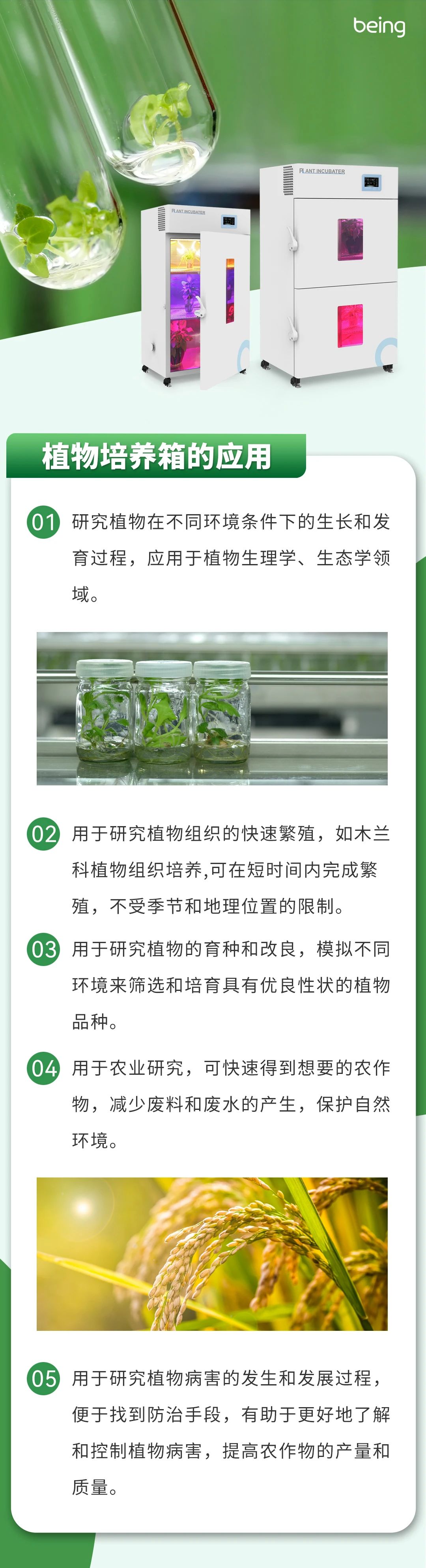 所以植(zhí)物培養箱和光照(zhào)培養箱因其功能側重點不(bú)同(tóng),應用領域也有所(suǒ)不同。